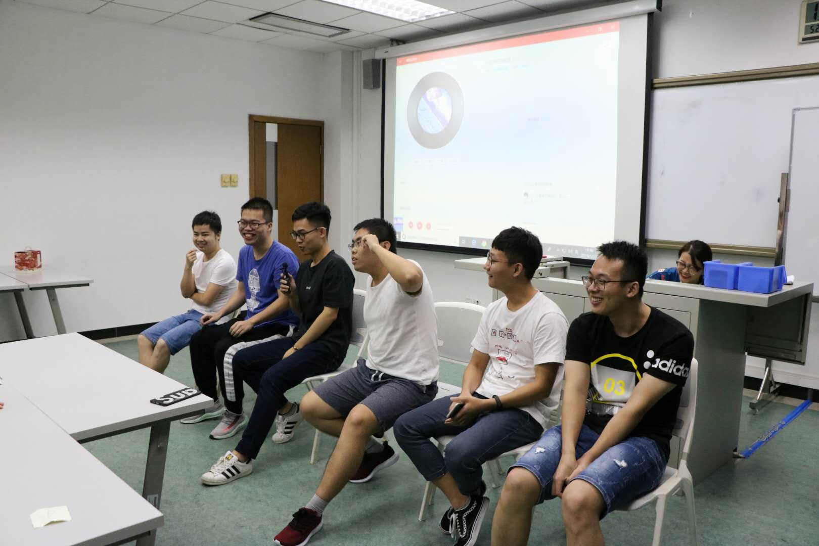 活动第二部分,是由团支书赵静主持的红歌版听歌识曲小游戏。精心挑选了36首大家耳熟能详的经典红色老歌作为此次游戏的考核曲目,例如《歌唱祖国》、《今天是你的生日》、《南泥湾》、《我和我的祖国》等。每组由三名团员组成,以两两对决的形式参与抢答。每一首红歌响起时,团支部成员都很激动。在这个过程中,同学们时而聚精会神猜歌名,时而激情澎湃唱红歌,在给大家带来欢乐的同时,又再一次重温了每一首红歌背后的革命故事,收获颇丰。活动的最后,大家一起到讲台前合影留念。