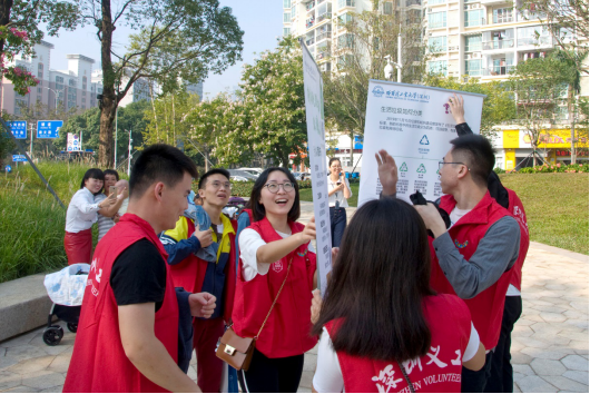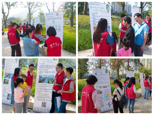 本次志愿服务活动分为“水处理与水生态保护”、“低碳生活”、“垃圾分类”3个板块,采用定点展板宣传、扫码线上调研、垃圾分类小游戏、沿河捡拾垃圾4种形式,在大沙河生态长廊九祥岭湿地公园范围内开展宣传活动。