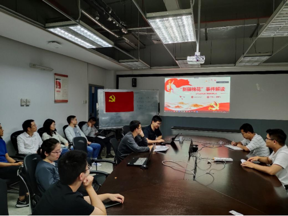 甯家飞同志的领学主题为:维护国家形象——“新疆棉花”事件解读。主要从“新疆棉花”事件的经过、事件涉及的产业背景和西方国家的造谣体系三个角度对整个事件进行了解读。甯家飞同志谈道,通过在谷歌学术检索相关关键词,以及在维基百科、YouTube和BBC搜索相关事件,不难发现部分西方国家拥有一套完整的涵盖学术圈、舆论宣传、非政府组织、官方口径的针对中国的造谣系统,这些系统通过某些所谓“权威人士”、“知名学者”系统性地制造、传播针对中国的污蔑、抹黑、谣言,并企图搞乱中国。针对这些谣言,我们要坚决抵制、反对,并予以强烈谴责和反制。此外,我们必须增强文化自信,加强国家软实力建设,在国际舆论场发出真实的中国声音。