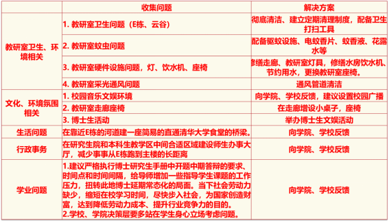 通过曲老师的指导以及支部所有党员同志的讨论,会议最终决定了将教研室卫生、环境问题和学院文化、环境相关问题这两类支部能够解决的问题作为支部为党员、群众办实事解难题的重点内容。具体解决方式有二:其一,将所有需要向物业、学院或者学校反映的问题,整理成可行的、详尽的文字材料进行反映;其二,针对大家提出的博士生活动较少的问题,支部决定在后续的每个学期,以支部为单位开展一次集体的支部文娱活动,缓解大家的科研压力,具体形式留由下次支委会讨论,最后将活动策划发给大家。