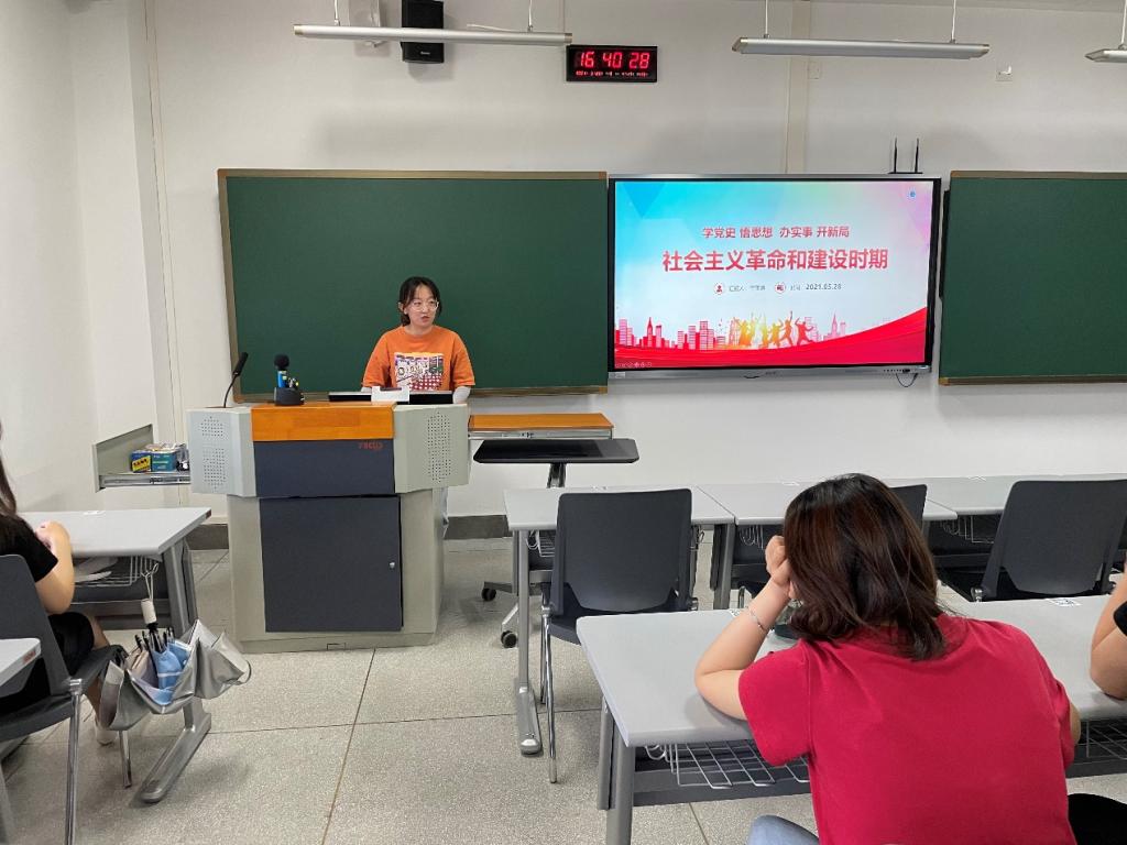 接着,团支部书记任亚涛同学带领大家进行“社会主义革命和建设”时期的党史学习。从探索阶段、探索历程、探索特征、经验教训四个方面介绍了这个时期的重大事件及产生的重要影响。中国共产党在领导全国人民进行社会主义革命和建设的过程中,特别是从1956年至1976年的20年间,虽然曾走过弯路,出现过挫折,但仍取得了很大的成就,积累了极其丰富的经验教训,为中国特色社会主义的形成做了重要准备。