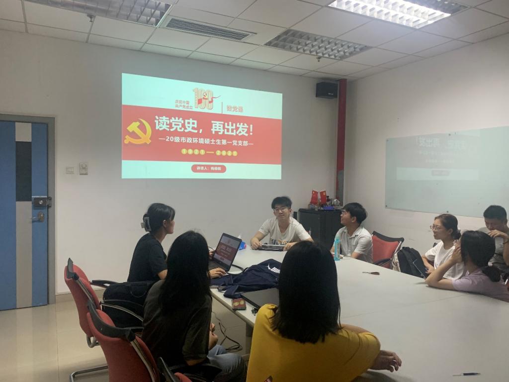 【哈工大(深圳)宣】(杨倩/图文)2021年5月30日晚21:00时,20级市政环境硕士生第一党支部全体党员在E418召开了五月党员大会,首先开展了第一议题学习,集中学习了中国共产党深圳市第七次代表大会工作报告《牢记嘱托、勇担使命,奋力建设好中国特色社会主义先行示范区》精神。此后,由梅楠楠同学领学,带领大家进行了主题为“读党史,再出发”的微党课学习。