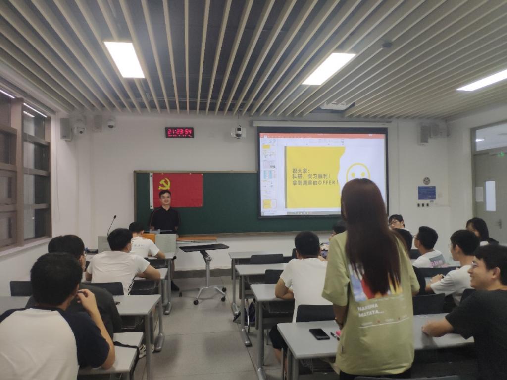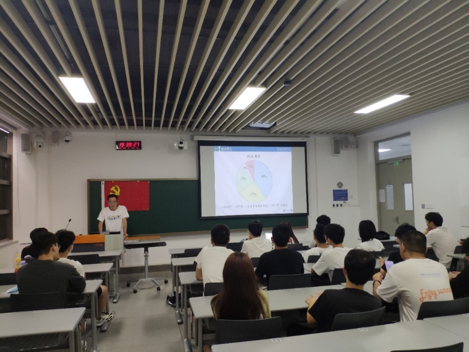 6月22日,土木与环境工程学院土木硕士生第一党支部“师兄师姐说——就业篇”主题党日活动在T5306成功举办。本次主题党日活动紧紧围绕“党建引领促就业,凝心聚力解难疑”的思路,旨在为党员群众解决“急难愁盼”问题。活动由党支部书记阙子超主持,邀请到了2018级土木学科硕士研究生郭宇航、肖津东、徐俊参与就业经验分享。本次就业经验分享内容分为选调考试、地产求职、教师应聘等专题,涵盖了土木学科毕业生主要去向。