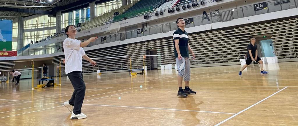 【哈工大(深圳)土木与环境工程学院 宣】(高淑红、黄思静/文 江月/图)2023年4月21日下午,为进一步促进基层党建之间的交流共建,提高党员身体素质,土木与环境工程学院教工第二党支部与清华大学深圳国际研究生院环境与生态研究院教师党支部在深圳大学城体育中心举办了羽毛球友谊赛。