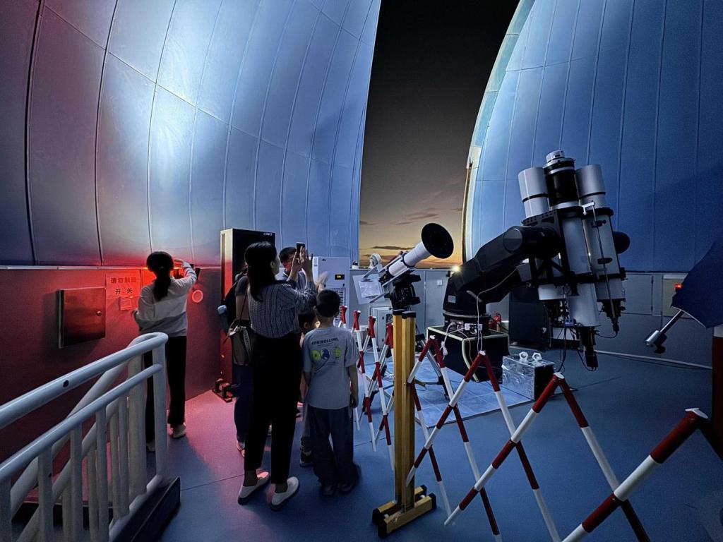 天文台工作人员介绍光学望远镜和太阳望远镜
