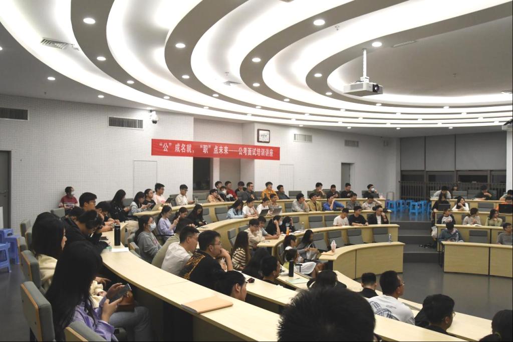 【哈工大(深圳)土木与环境工程学院宣】(欧阳莹晔/文,于承民/图)随着社会的发展和就业形式的多样化,公务员、选调生、事业单位越来越受到毕业生的青睐。为助力同学们在公考面试中脱颖而出、提前规划充分备考,2023年11月28日19:30,土木与环境工程学院研究生会联合哈尔滨工业大学(深圳)就业协会于T3202举办“公”成名就,“职”点未来——公考面试培训讲座。