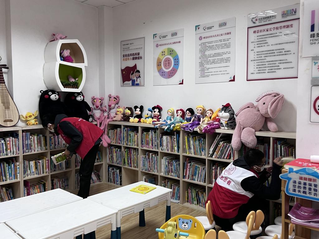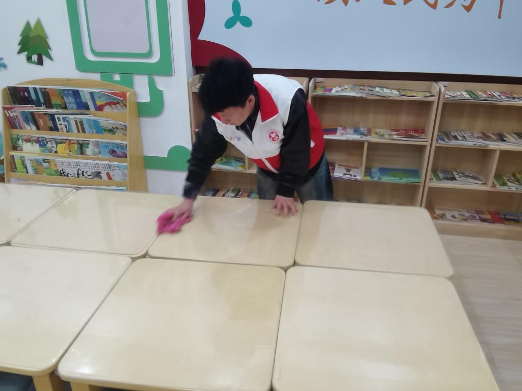 在图书馆清洁与环境美化方面,志愿者利用抹布与清洁剂对馆内书架、桌椅、门窗等除尘和对地面进行清扫,并用拖把清除地面残留的污渍;清洁工作中所产生的垃圾也被志愿者根据垃圾分类标准,进行统一分类与处理。社区图书馆为提升社区居民的阅读体验,在馆内摆放了绿植,同时在儿童读物区内布置了玩偶与玩具,志愿者根据要求对这些物品进行了擦拭、整理与归位。在志愿者不懈努力下,图书馆的卫生情况与阅读环境改善明显。