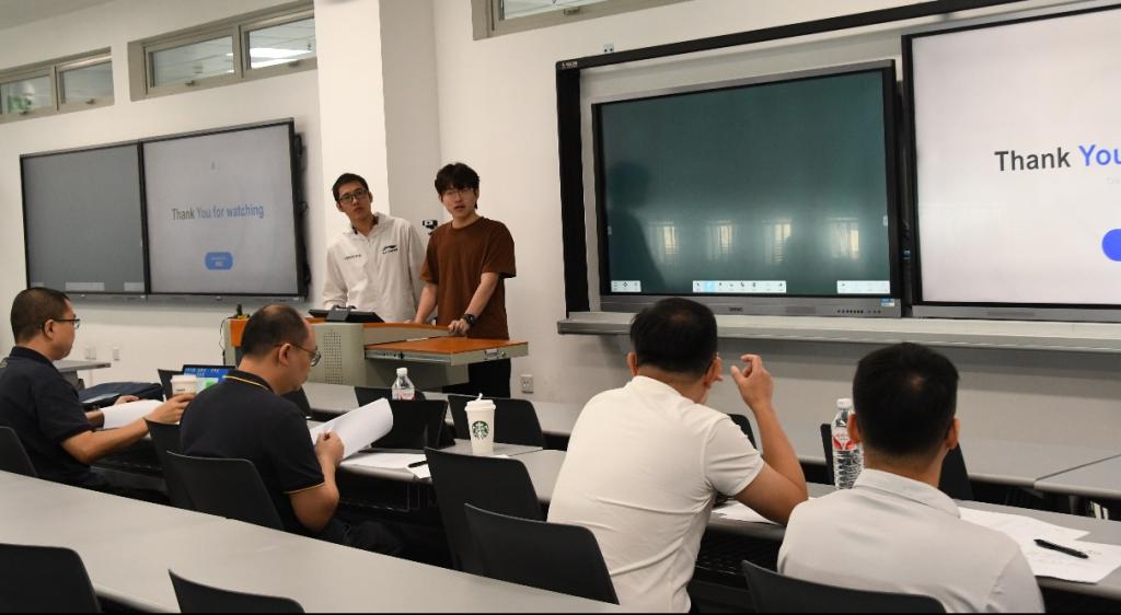 同学们从立项背景、中期研究内容与成果、存在问题与改进措施、后期工作与预期成果等多个方面进行陈述。评审老师和同学们积极互动。老师们针对项目的可行性、经费使用情况以及所使用设备的作用等方面给出了自己的建议,并鼓励同学们积极创新、勇于实践。