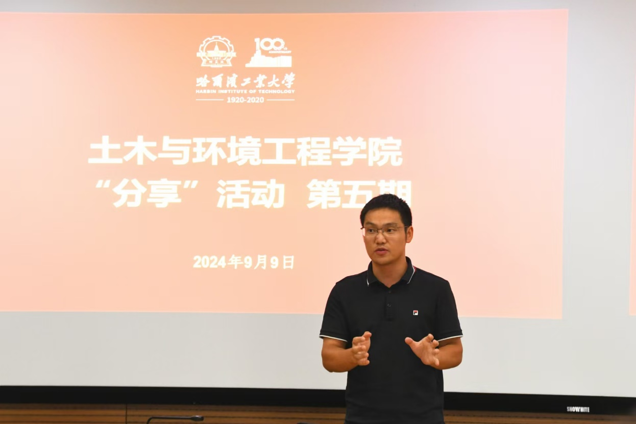 【哈工大(深圳)土木与环境工程学院宣】(郭乐/图,王兆涵/文)2024年9月9日下午三点,为庆祝第四十个教师节,土木与环境工程学院第五期“分享”系列活动在信息楼L817举行。学院张芳教授、胡钢教授受邀参加本次“分享”活动,就其科研工作、生活成长等经历进行分享。本次活动由学院执行院长金文标主持,十余位学院教师、博士后参加了本次活动。