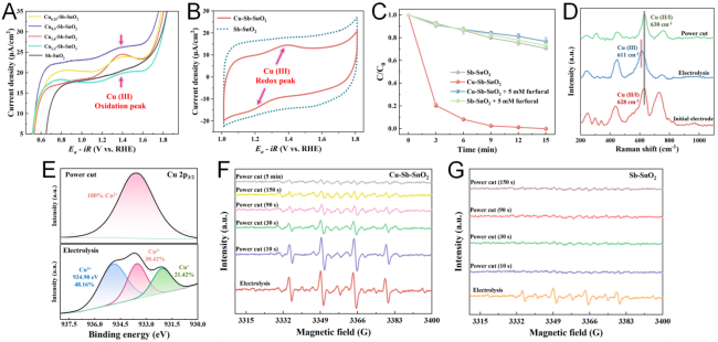图1:亚稳态Cu(Ⅲ)的探索。基于多种表征技术全面、系统的证明了电解过程中原位电生成Cu(Ⅲ)组分的存在,阐明了亚稳态Cu(Ⅲ)氧化水分子产生•OH的过程。