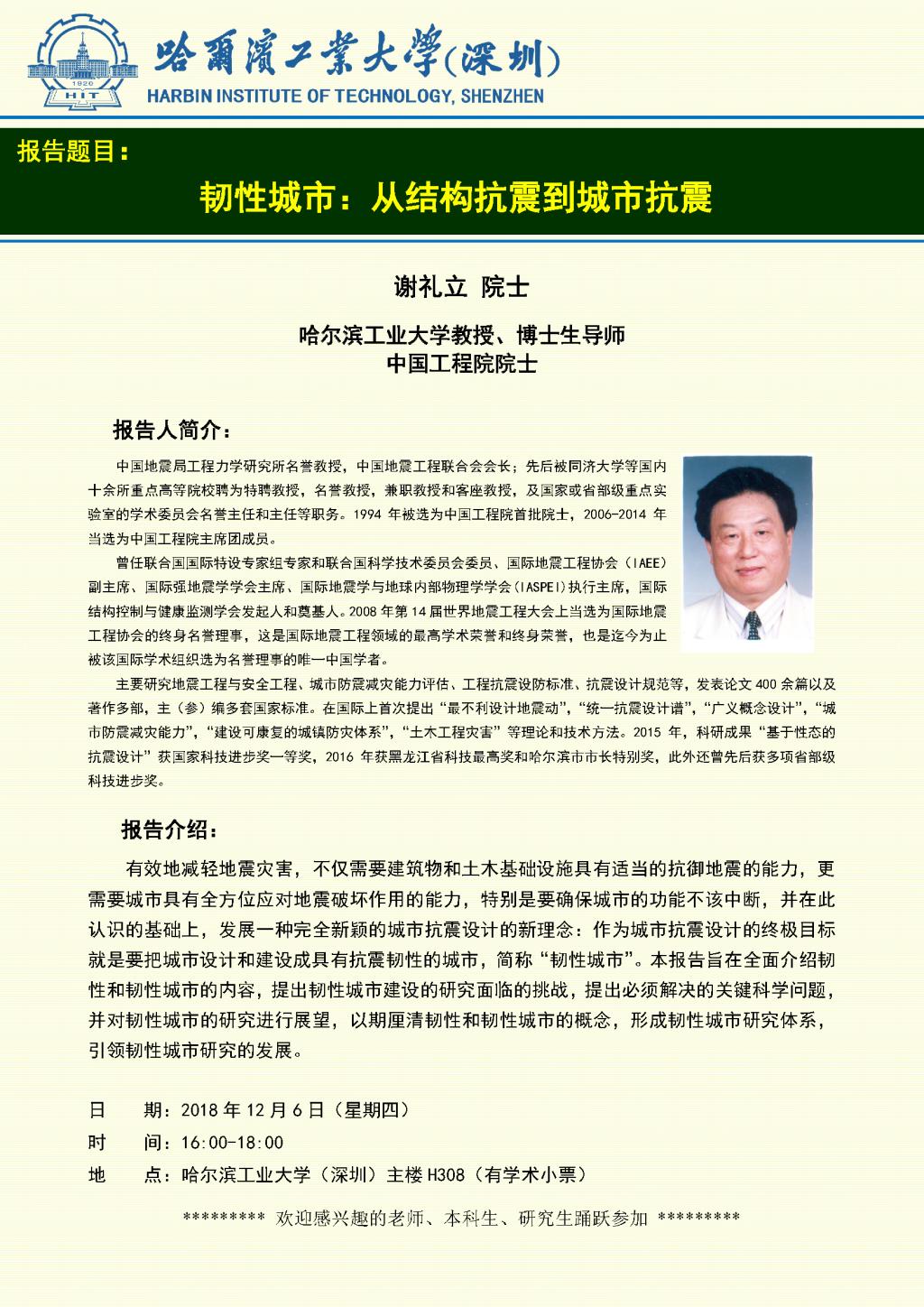 谢礼立院士“韧性城市:从结构抗震到城市抗震(2018.12.06)”