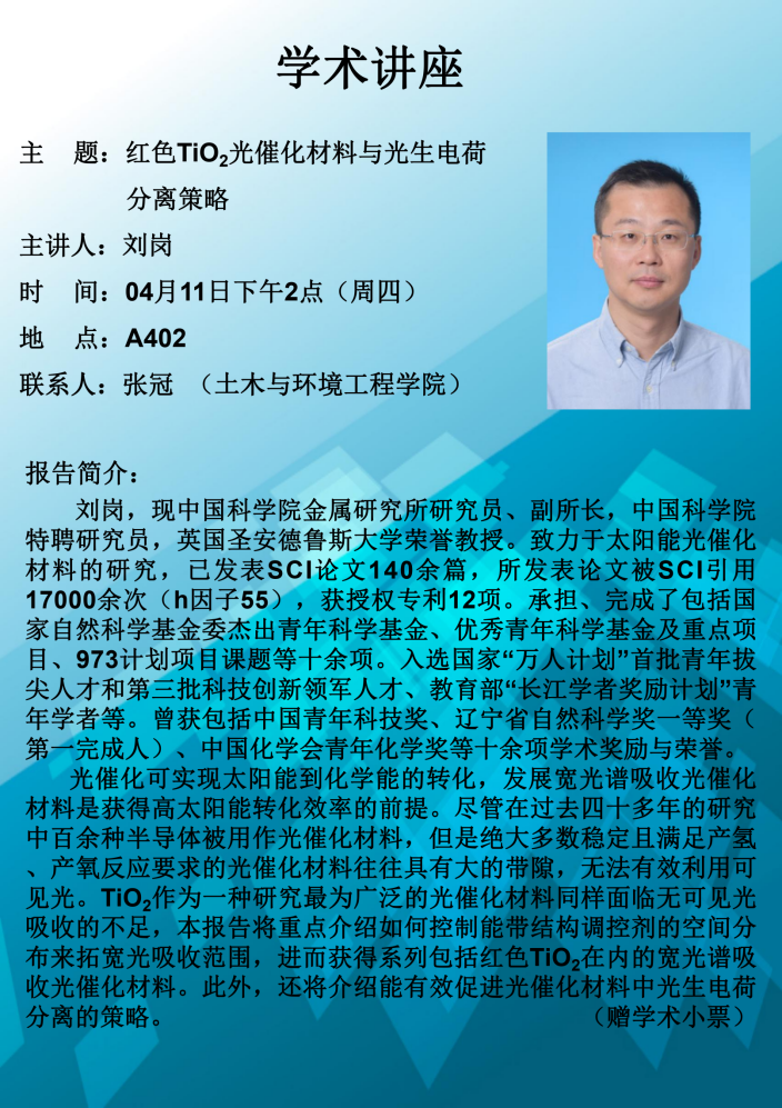 中科院刘岗教授“红色TiO2光催化材料与光生电荷分离策略(2019.4.11)”
