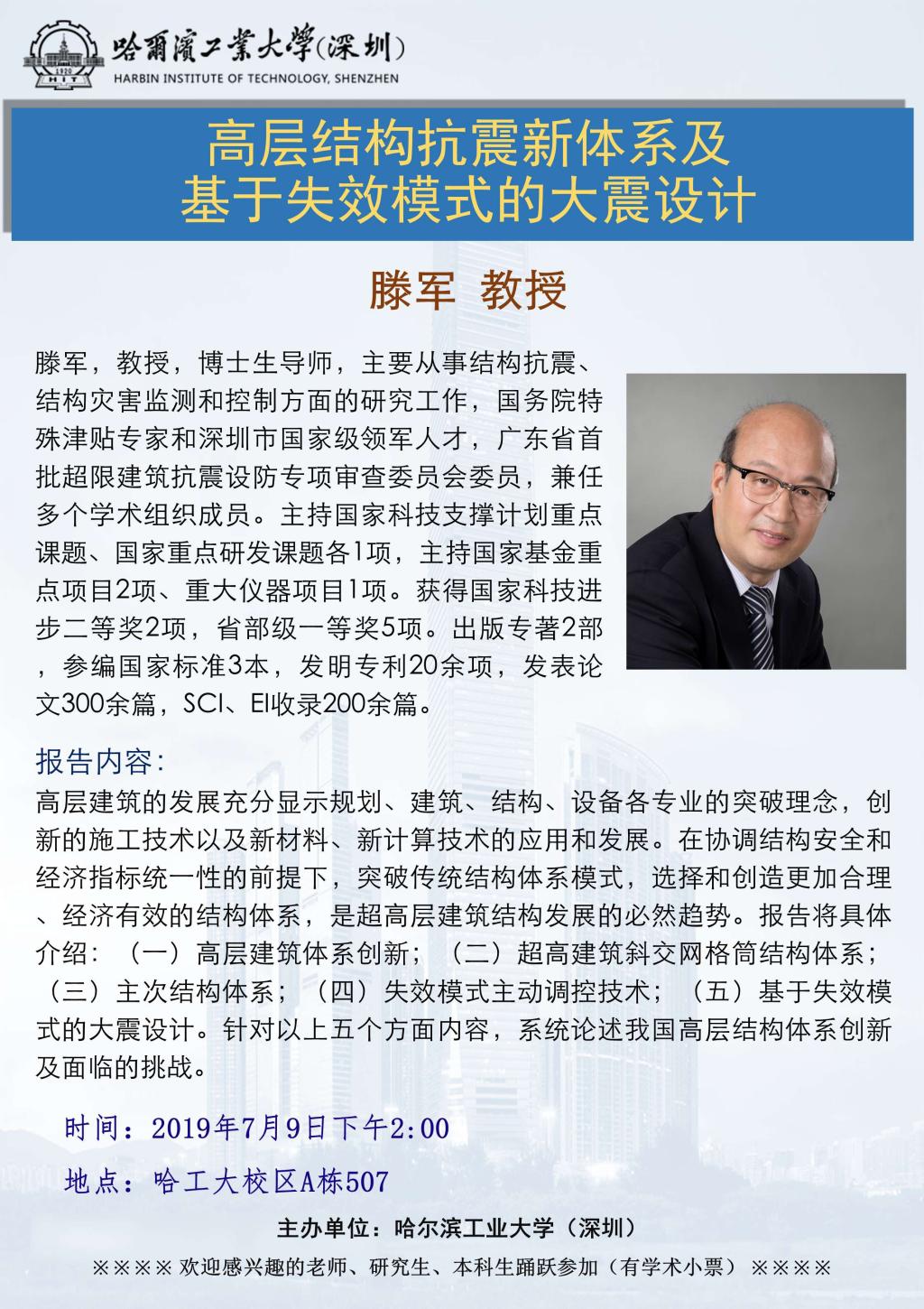 滕军教授讲座“高层结构抗震新体系及基于失效模式的大震设计”(7.9)