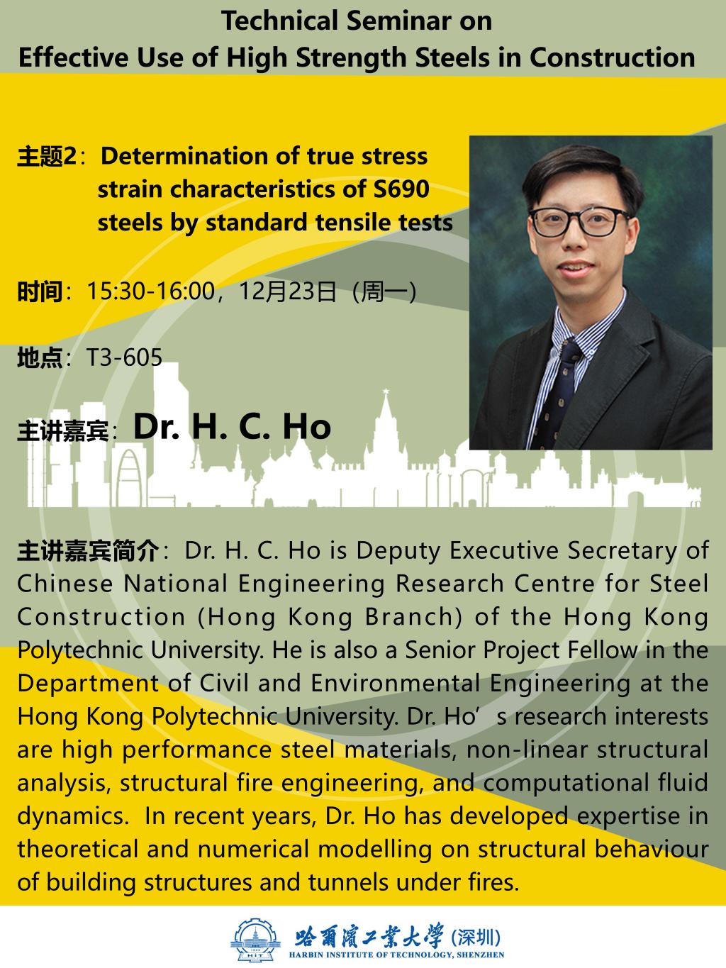 香港理工大学高级研究员何浩祥讲座:“Determination of true stress strain characteristics of S690 steels by standard tensile tests”(12.23)