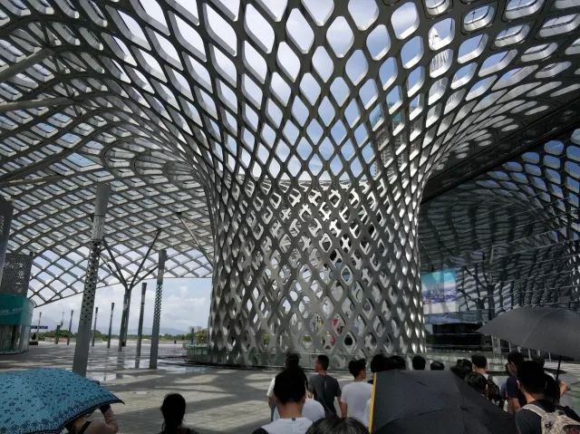 在工作人员的带领下,我们参观了深圳市内有名的建筑——深圳湾体育中心,钦佩于其奇特外观的同时,我们也对这种网状建筑结构有了一定认知。