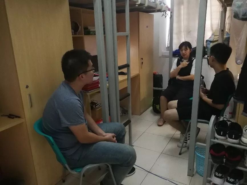 吕老师首先走访了荔园2栋612寝。在612寝,这三位同学都有些“特别”。特别之处在哪里呢?他们谈到,在入学前,他们都曾有过一段时间的工作经历。吕老师亲切询问了三位同学的工作内容,以及在单位与学校的不同感受。