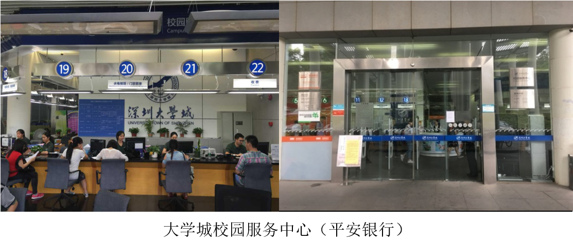 ☆大学城校园服务中心(平安银行)业务:补办校园卡、挂失校园卡、宿舍退费与缴费、宿舍调整、银行的所有业务等。
